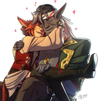 It wasn’t until he was 22 when he managed to escape. He was allowed to go on shore a lot of times, but this one...this one was different. It was more chaotic than he had seen before. And this was his chance. Hiding behind a counter, hoping to be forgotten and left behind. However he was not alone. Khiiral didn’t just find someone hiding behind that counter, but his future best friend. Ylde was also hiding from the pirates, and with her research/lab being destroyed by his “crew.” They ran away together, both of them silently escaping a trap they had both managed to get caught in.